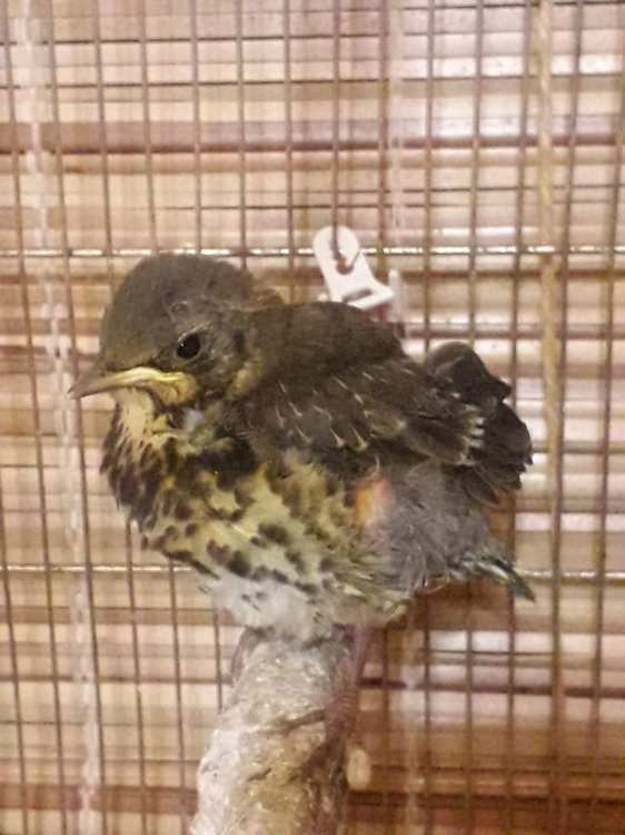 Крысуня Опубликовано 5 июня, 2020 #1 Опубликовано 5 июня, 2020 Подскажите, пж. Знакомая подобрала птенца дрозда. Сейчас кормит его. Собирается выпускать в природу, так как держать, возможности нет. Как я поняла из информации здесь, что выпустить можно как научится летать в то место, где есть дрозды. Сейчас птенец не ест сам. И не пьет сам. Как научить? Или еще рано. Фото птицы сейчас. Дома около недели.