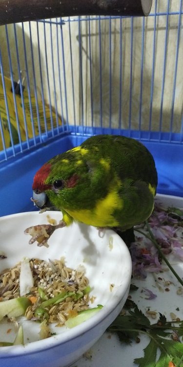 Здравствуйте, помогите разобраться, что за залысина в углу глаза у какарики. Три недели назад приобрели на птичьем рынке попугайчика какарики. Сказали, что самец и ему четыре месяца. После в одном из сообществ все знатоки в один голос определили, что это самочка. И уже дома в тот же день обнаружили залысина в углу левого глаза. Другой глазик абсолютно нормальный с оперением вокруг. Оба глазика чистые, не мокнут, не мутные. Носик чистый, выделений из носа нет, не чихает, нос и газа не трёт. Иногда чистит клюв о жердочки, на прогулке о края мебели, но не навязчиво без увлечения. Наблюдаем за ней и поняли, что ни глазки, ни носик не беспокоят. Кормим РИО для средних попугаев, но выбираем сафлор и семечки подсолнечника. Очень много ест яблоко. Нектарин, клубнику, малину, кукурузу, киви ест, но по чуть-чуть. Даём веточки плодовых деревьев и березы с молодой корой. Зелень цикория, одуванчика, подорожника. Семечки подсолнечника шт. 4-5 в день как угощение за выполнение команды, так же и сафлор шт 4-6 в день. Не купается, хотя предлагаем разных форм и цветов купалки. Помет в начале приобретения попугая был жидкий( в лужице зелёный не сформированный червячок с расплывшимся белым пятном), через неделю помет с оформленым т.зеленым червячком и белой точкой, иногда в небольшой лужице, чаще без. Сравнить не с кем ( какарики впервые у нас), но думаю, что птичка в целом активна. С утра часа два много летает, чирикает. Потом часа три дремит, после обеда опять много летает и чирикает. К вечеру много ест, затихает и дремит. Режим: день 13 часов, ночь 11часов. Птичка на свободном выгуле по квартире, других птиц и животных нет. В клетке только ест и вечером сама заходит на сон. Вопрос: очень волнует залысина, что это? За три недели наблюдения вроде залысина не увеличилась. Прикрепляю фотографии в первый день как с рынка и через три недели спустя.