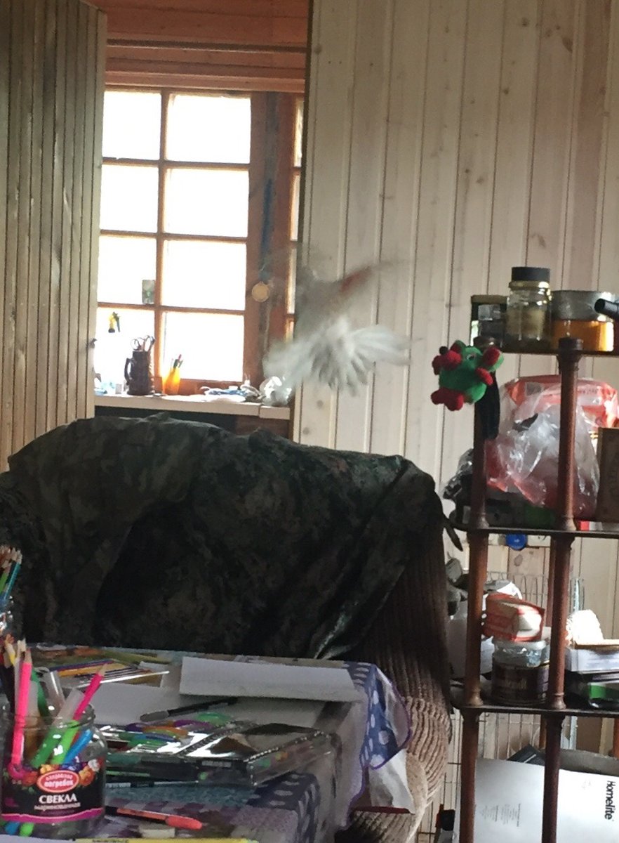 Digi Опубликовано 6 июля, 2020 Автор #98 Опубликовано 6 июля, 2020 Вчера: она летает хорошо, ловко но не далеко и мы решили её тренировать . Я её не сильно подбрасываю сантиметра на три вверх и она должна лететь как можно дальше. Так вот обычно я занавешиваю окна. А дальше на 3-4 подбрасывание я думаю понятно, что произошло... естественно, она направила свой курс прямо в окно! И как чебурахнется головой об стекло! Я то уж боялась что сотрясение будет... но нет, Все нормально как будто в броне была!