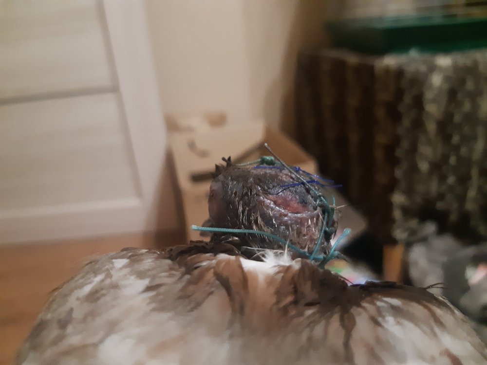 Он же, но через 6 часов. Снова обработка и частичная зачистка. И понемногу выдергиваются срезанные перья, дабы на их месте росли нормальные, целые.