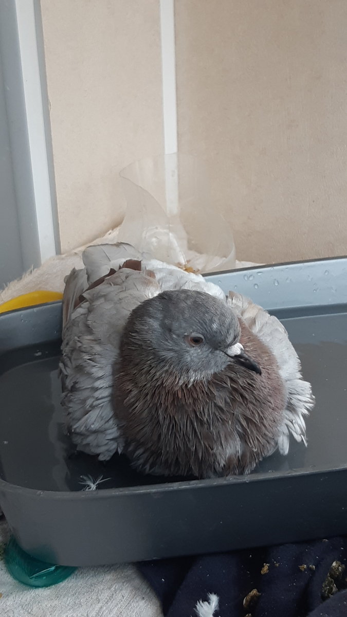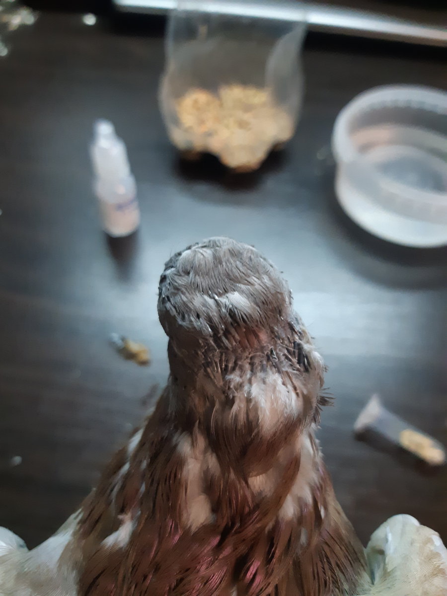 Так как имел место быть застой зоба, то на свой страх и риск голубь был напоен на вторые сутки после серьёзного чмт, чего делать не рекомендую. Но это помогло ему с очисткой застоя. Ну и плюс промывки катетером.