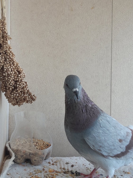 Гуль полностью пришел в норму, оперение равномерное, вес 300-305 г. Ленив, кушает и пьет сам, любит купаться. Из вопросов — он от гиподинамии потерял в объёме грудных, модно ли это как-то исправить? Собираюсь выпускать к прикормленным товарищам у дома. Все месяцы содержался на неотапливаемом застеклённом балконе.