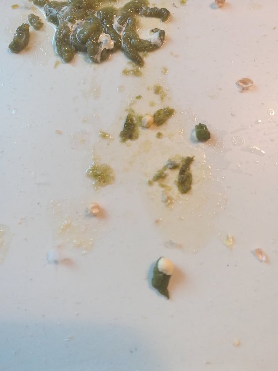 nurchik Опубликовано 17 сентября, 2020 Автор #28 Опубликовано 17 сентября, 2020 (изменено) @Кузяныч когда вернула бифидобактерии, запах опять ушел. Охарактеризовать запах сложно, скорее кислый - когда у меня испортился Юппи в банке, запах был такой же. Иногда отдает креветками . Когда в помете есть вода, то от такого помета есть запах. Про объем я имела в виду как порция одной какули , так и суммарный за сутки Свежее фото помёта. Сейчас под бифидобактериями запах похож на хлеб, зерно, не сильный. Объем за эту ночь получше . Зерно похоже лежит то чем его вырвало, не из помета. Активность хорошая , попужит вовсю, но с перерывами на отдых. Иногда сидит на жердочке и машет крыльями как при полете. Поет, перебивает, чирикает, бьёт колокольчик и мячик Изменено 17 сентября, 2020 пользователем nurchik