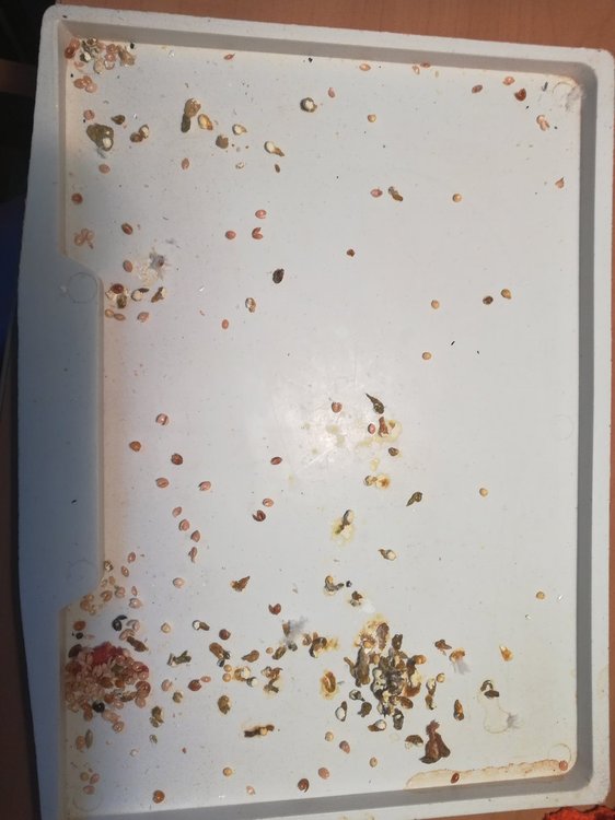 nurchik Опубликовано 4 сентября, 2020 Автор #15 Опубликовано 4 сентября, 2020 Я выкладывала фото помета в соседний форум это фото за прошедшие сутки (вчера) день и ночь. ночной на фотографии посередине справа (спит на качельке), дневной снизу (там лампа, он там сидит днем) За сегодня я насчитала кучек 15-20 (в т.ч. просто засохших пятен), из них часть подковыряны, конечно (он съедает помет, за что я его ласково ругаю, не разрешаю)