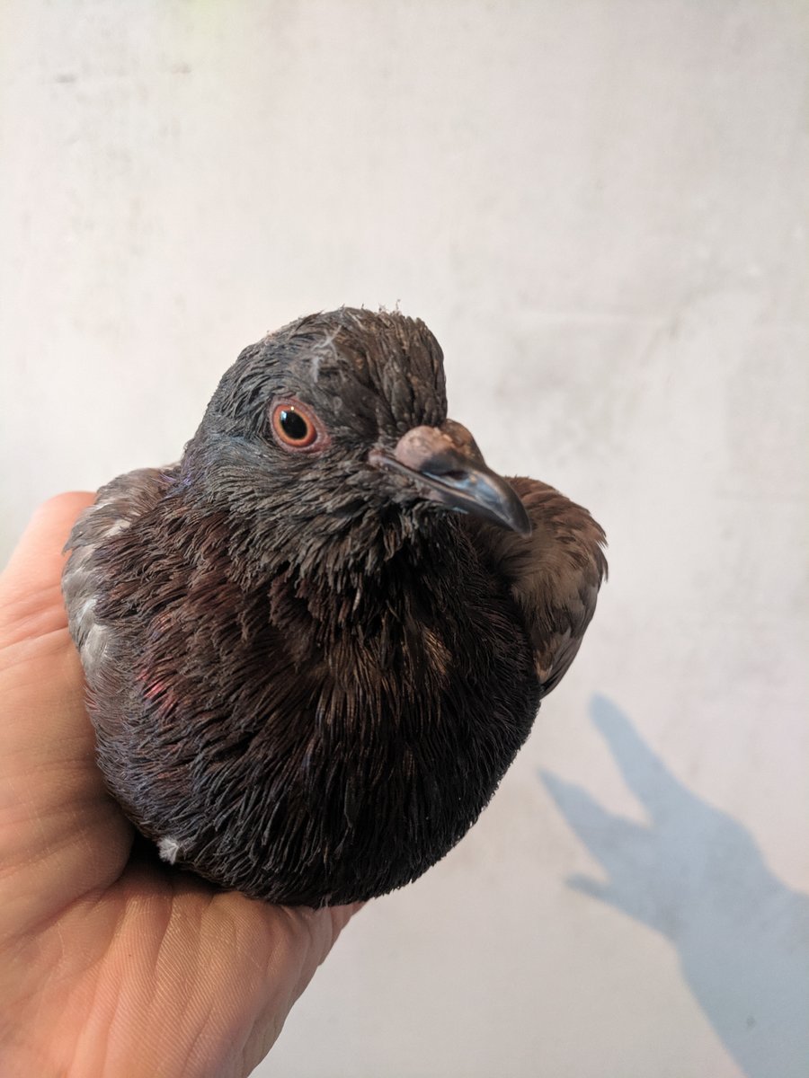 Сидит очень скромно и спокойно, без попыток вырваться. Признаки, что ему больно отсутствуют, по крайней внешне. Как обычно тянется, разминает крылья, перебирает перья. Взгляд здоровый, там, может немного будто подустал. Упитанный. Помёт приобрёл нормальную форму, почти как у здорового.
