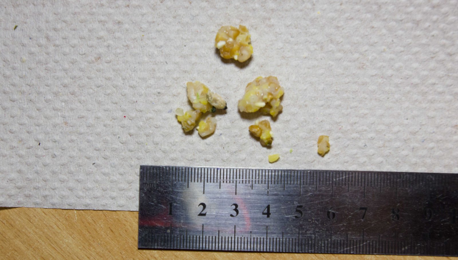 Стал кормить крупным зерном (какой привезут в Комбикорма), возможно плохое зерно, зерна в магазинах нет, беру в комбикормах, там конечно плохое прочищаю, немного промываю, кипятком ошпариваю, сушу. Помет жиденький, на верху ярко-зеленый это свежий. Сейчас дам угля.  Чем кормить не пойму, сам он не может, есть дробленая пшеница (из магазина), ложкой не будешь пихать подавится, только шприцом. Принудительно шприцом кормить, противный очень сопротивляется. Похоже зерно с пометом идет.