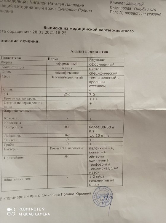Ната Ната Опубликовано 28 января, 2021 Автор #10 Опубликовано 28 января, 2021 Только что сделала анализ помета. Прилагаю. Аппетит отличный,пока ездили, проголодался, сейчас мечет зерно. Еще не могу найти дицинон ампульный, нет ни в одной аптеке. Только таблетки. Что делать, помогите!!!