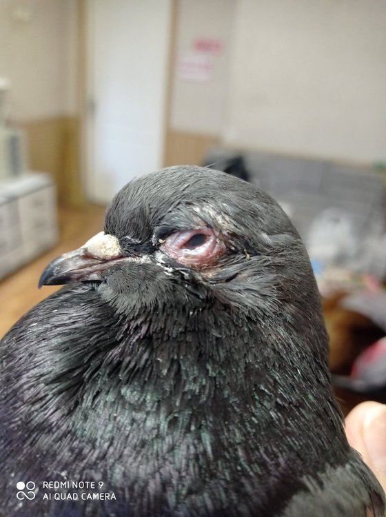 Ната Ната Опубликовано 27 января, 2021 #1 Опубликовано 27 января, 2021 Помогите в лечении голубя. Подобрала 24 января, уже стемнело, не улетел на крышу. мороз был -36. Голубь истощен, вес 240гр , весь ледяной, но вспархивал, летал низко и тут же садился на землю. Сразу дала, как скорую помощь 1/4 табл. метронидазол. Левый глазик слипшийся и гной прозрачный. Сам не ел, накормила в клюв ячменем немного, напоила водой. Есть и пить не хотел, судорожно не раскрывал клюв. На следующий день обнаружила кровь в помете. Глазик закисший. Стала давать Тилозин-50 с 25 января по 0,15мл в клюв 1 раз в день.(решила, вдруг трихомонады, ведь глаз закис) Ну а потом прочла, что это скорее всего кокцидии(т.к. кровь в помете). Но при кокцидиях нет гноя на глазах, или есть? 26 января у нас проснулся аппетит, ест зерно весь день, пьет умеренно. Прилагаю фото помета. глазика и клоаки. Вокруг клоаки очень много уратов, и в помете тоже, но клоака сухая. Прилагаю фото. На фото глаз в одном месте что-то белое, это кусочек плотного гноя. Глазки протираю отваром ромашки и календулы.