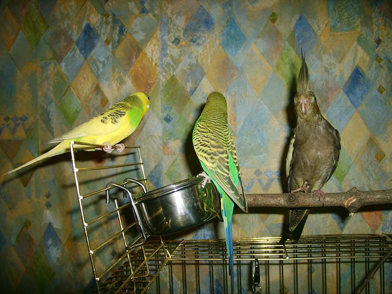 Алена Кирова Опубликовано 25 августа, 2007 Автор #289 Опубликовано 25 августа, 2007 (изменено) Сегодня застала интересную картину: Кир был искренне удивлен, что они с Лушей гуляют, а "великанша" сидит в клетке (я возилась по хозяйству, и моя "наплечница" была временно отправлена в домик) Вот уж странно - когда они на выгуле, ноль эмоций по отношению друг к другу. А сегодня Кир дежурил на клетке Вилочки. Даже песни ей пел - вот уж Ромео!Но потом Вилочка пошла гулять, и все встало на свои места :-))На второй фотке Кирюха и Лушенька - прям как на семейной фотке начала прошлого века:-)) Нравится мне эта фотка - уж очень каждый из них там "характерный" - Кир такой отличник и Лушка-веселушка со своими лапками-растопырками Изменено 25 августа, 2007 пользователем Алена Кирова