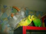 Алена Кирова Опубликовано 31 августа, 2007 Автор #302 Опубликовано 31 августа, 2007 (изменено) У нас событие: принимаем в гости Фунтика - волнушика Тигренки, которая уехала в отпуск. Птички знакомы, поэтому Ложечки тут же утянули постояльца в свою компанию. ... помню, всего лишь год назад я решилась-таки завести волнистого попугайчика.. а теперь этот дом стоит на ушах от крика и догонялок трех волнушек и взволнованной нимфочки, которая не участвует во всей этой волнистой вакханалии , и только крепче ко мне прижимается Потом к нам прилетел Фуняша. За ним - все остальные. Вот это и стало самым главным удивлением: Луша и Кир сражаются за место у меня на голове. Впервые они прилетали туда в принципе! Вот интересно, почему они прилетают только когда рядом Фуняша - будь то его территория или наша?.. Так и сидела я, с тремя парами топающих лапок на голове и одной Вилочкой на плече...Вышла даже одна фотка - правда, у Луши в этот момент были дела поважнее Изменено 31 августа, 2007 пользователем Алена Кирова