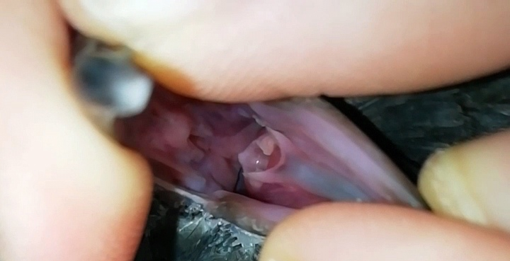 Вроде бы и без катетера пока что получается. Просто просовываю "котлетку" мимо наростов, он её глотает. Но ему очень неприятно. Может в шее где-то есть тоже наросты, которые болят. Может у него клюв ещё болит, потому что когда я его открываю, то он очень усердно пытается выкручиваться.