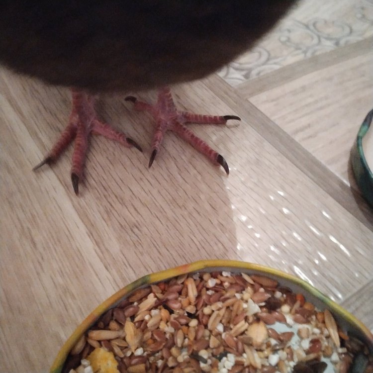 Namaste1122 Опубликовано 6 мая, 2021 Автор #10 Опубликовано 6 мая, 2021 Осмотрел я его внимательно кароче. Признаков истощения нету, пьет, ест сам вроде хорошо, тарелочку уже прилично опустошил, серет тоже хорошо. Может у него с ножкой правой что-то, поэтому он так мало двигается? Я заметил одна лапка левая расправлена всегда, а на другой палец задний вечно когтем вниз задирается, а сбоку палец слишком близко к среднему пальцу, на фотке ещё более менее, иногда боковой палец вплотную к среднему. И стоит он на ножках плохо. Может нога болит у него, упал и 2 пальца сломал? Чё делать? Как ему гипс сделать? Точно наверное с ногой что-то, если взять его на руку и потом на пол садить он заваливается на пузо и потом встаёт на ноги. Я пока осматривал его замучил бедолагу. Вот фотка ног, я ему коготь расправил задний на правой ноге, он у него всегда вниз задирается. И фотка клюва заодно. И на пузе наверное из-за ноги редко спит, один раз за день лег на пузо на 5 минут, все время стоит только, наверное ногу больно подгибать.