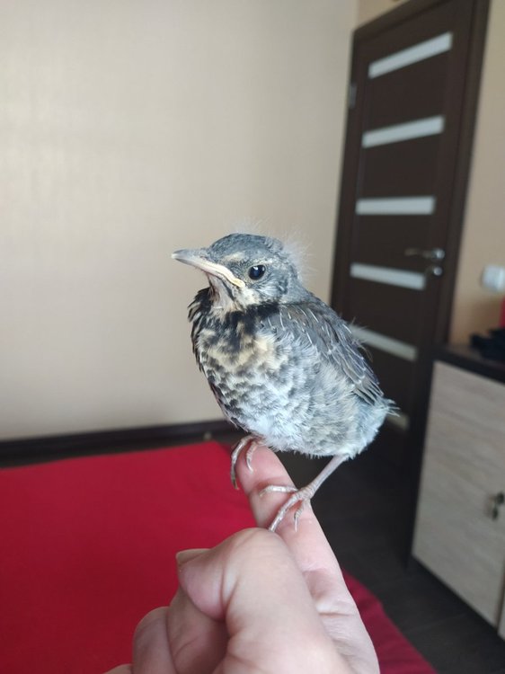 Добрый день! Неделю назад пришлось подобрать птенца (видимо это дрозд???).