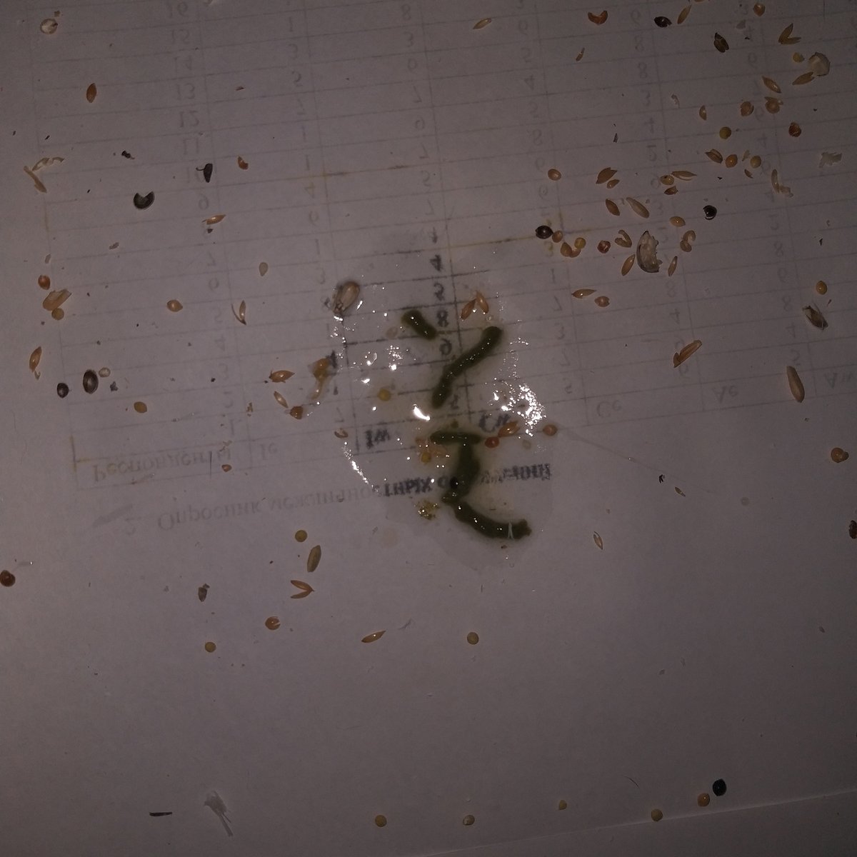 Тесла Опубликовано 28 июня, 2021 #1 Опубликовано 28 июня, 2021 Всем доброго времени суток! 2. напишите вид птицы - жако 3. её возраст и пол; - 9,5 лет, пол неизвестен 4. подробно распишите рацион (с указанием названий кормов и витаминных препаратов); - корм Рио для крупных ( только всякие там сушёные фрукты овощи, воздушные зёрна, ягоды она из этого корма не ест) , свежие овощи - фрукты - зелень по сезону, веточный корм, кукурузу очень любит, но даю не часто, чечевица проклёвыши хорошо ест, каши не ест, яйцо любит, даю не часто размером с чайную ложечку, в основном белок. минеральный камень грызёт редко, биогрит тоже, сепию ещё реже. с месяц добавляем витаминно минеральные гранулы Рио, которые с красной крышкой, но она их вроде не ест или очень мало, т.к. когда высыпаю остатки корма , то встречаются и гранулы. 5. опишите условия содержания птицы (температуру и влажность воздуха в комнате) и длину светового дня;температура сейчас как на улице, т.к. окна летом постоянно открыты, влажность в среднем 50 6. опишите настораживающие вас симптомы; несформированный помёт, присутствует много мочи, порой очень много. 7. напишите, как давно птица болеет; обратила внимание несколько дней назад 8. если птицу уже лечили то, пишите: как заметила, начала давать ветом и карсил, правда последний она съедает много меньше нормы. 8.1. какие исследования, где и как давно проводились; нет Несколько дней назад после поедания клубники сходила в туалет огромной лужей воды, без фекалий. До этого днём ещё ела всякие овощи, зелень. Я насторожилась, т.к. такую лужу увидела у неё впервые. Стала пристально наблюдать , после этого она очень часто испражнялась, лужи уже не были огромные, и были в основном с фекалиями и уратами, но всё равно много жидкости. Тут же начала добавлять в воду ветом и сыпать карсил . Но карсил ей пришёлся не по нраву...После этого сидит только на сухом зерновом корме и ветках яблони. Помёт всё такой же, периодически даже как бы близки к поносу что ли ( ну фекалии местами плохо сформированные, как размазня ) и меняется цвет- то зелёный, то оливковый. а на след день после клубники утром были даже пузыри. Перед сном сегодня попила воды и вскоре после этого сделала в короткий промежуток времени несколько достаточно больших луж, практически без фекалий. Фото разных каках добавила. Думаю что это началось не вот сейчас резко, а какое-то время назад ( имею ввиду увеличенное кол-во жидкости ) , сейчас я некоторое время отсутствовала, а ранее вроде вспоминается, что при уборке вроде бы была достаточно сильно промокшая бумага, но не придала этому значения...В остальном ведёт себя обычно , признаков не домогания не проявляет. Может быть не много упал аппетит, но тут не уверена, т.к. так совпало, что именно в этот день , как она наелась клубники, я поменяла ей жердь рядом с кормушками, а она жуткая трусиха и подолгу привыкает к новым предметам интерьера. И к кормушке сейчас подходит не надолго, не наступая на эту новую жердь, быстренько вкусняхи повыбирает и бегом назад, да ещё и посыпанная карсилом еда её не впечатлила. В общем факт, что съедает эти дни она меньше, чем обычно, но связываю это не с потерей аппетита, но при этом и вес не теряет, в среднем 430гр. В среду идём к орнитологу ..ну как к орнитологу, как мне сказала девушка на ресепшене, это не орнитолог, но птиц она тоже принимает. Ну посмотрим, выбора всё-