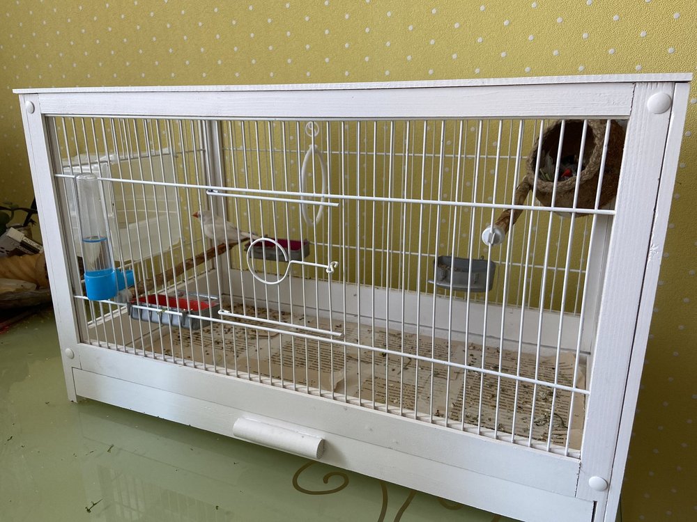 Клетка стоит в отдельном гостевом домике, где им никто не мешает. Туда я её поставила на период гнездования, в обычное время клетка стоит ближе к людям. Сейчас клетка достаточно освещается, световой день составляет примерно 15 часов.