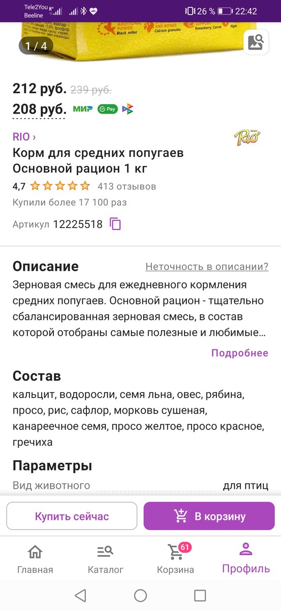 Наталья Лукашова Опубликовано 20 октября, 2021 Автор #3 Опубликовано 20 октября, 2021 Иногда даём ещё тертую Корм RIO мы начали давать примерно месяц назад, попугай хорошо на него отреагировал, кушает с аппетитом. Раньше давали GRANDMIX PARROCCHETTI, тоже никаких нареканий. Иногда даём ещё тертую морковь, летом давали укроп, но он его практически не ел. Морковь тоже плохо ест. Сейчас заказали минеральную смесь RIO. До этого времени витамины никакие не пропивали. морковь, летом давали укроп, но он его практически не ел. Морковь тоже плохо ест.
