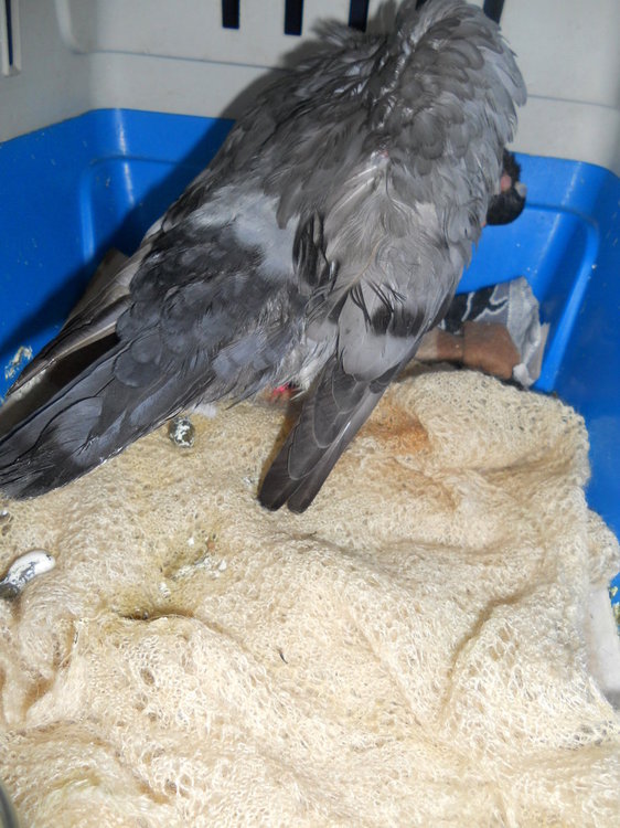 Гоша чувствует себя не очень хорошо Кормлю его сама . Глаз как-то преобразовывается  в сухую корочку,  ослабли лапки , он все время сидит на шарфике шерстяном. Я подаю ему  лекарства  только от НК.  Глаз протираю мирамистином . У врача в Люберцах еще не побывали.