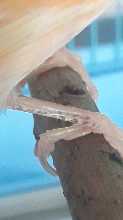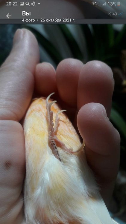 Екатерина1977 Опубликовано 8 ноября, 2021 #1 Опубликовано 8 ноября, 2021 Добрый день.Подскажите пожалуйста,что это может быть.У кенаря с лета после линьки появились черные пятнышки на одной лапе.Сам кенарь был ярко апельсинового цвета на спине серо черное пятнышко, лапы персиковве перламутровые.После линьки перья стали персиковые.Может это быть пигментация? Был пролечен от трохейного клеща Стронгхолд 6% 1 капля на холку ,сейчас мажу лапки аверсектиновой мазью раз в три дня, клетка обработана от паразитов.Уход обычный, зерновая смесь,мягкие корма,фрукты,купается почти кождый .Хорошего ветерина по птицам в городе нет.Те что есть, не знают что это такое,предлагают лечение от клещей.Лапка не болит не беспокоит, неделю назад подстригла когти т.к.он посточнно чухал лапы.Сейчас вроде бы успокоился теребит только один ноготь.
