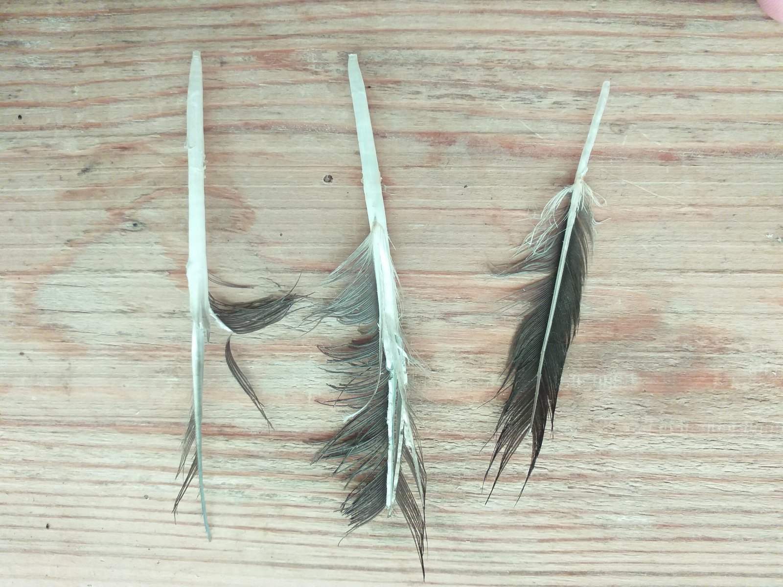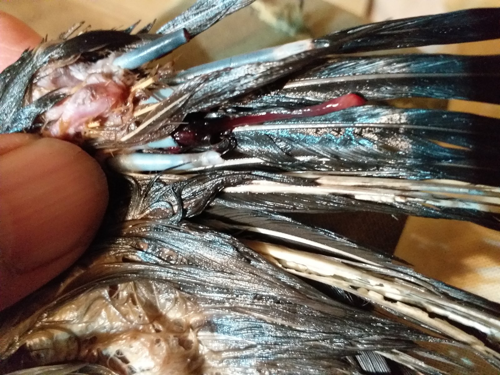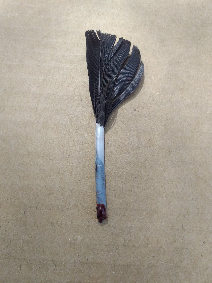 Валентин, Эжва Опубликовано 29 мая, 2022 Автор #51 Опубликовано 29 мая, 2022 Сегодня растущее перо с кровяной трубкой отломалось. Отломалось когда Гоша слетел с лестницы. Наверно новые перья обламываются когда вырастают и выходят из общипанного ряда перьев крыла, перо начинает парусить, трубка пера не выдерживает нагрузки. В нормальном крыле с целыми перьями растущее перо поддерживается соседними перьями а данном случае соседних перьев нет.