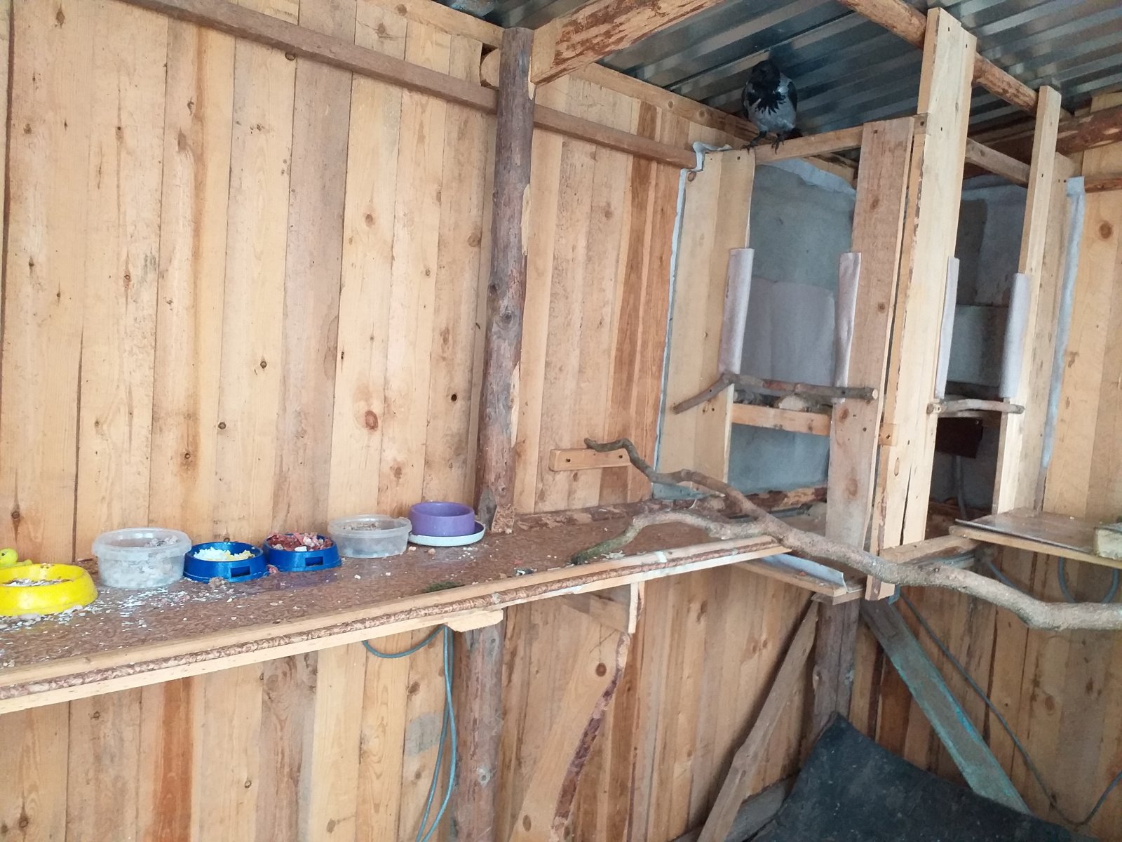 Валентин, Эжва Опубликовано 2 декабря, 2022 Автор #65 Опубликовано 2 декабря, 2022 (изменено) Сегодня годовщина, год назад началась наша с Гошей история. И сегодня Гоша встретил меня, когда я подошёл к вольеру, не ка обычно прыгая в своём убежище вверх-вниз, на коряжку и обратно, а спрыгнул вниз и начал летать с одной стороны вольера к другой и обратно, и так несколько раз. Сегодня приехал на дачу немного позже обычного, это он заждался меня и обрадовался? В вольер Гошу переселил 8 июля, вольер это переоборудованный дровяник 2х3 м. Вес Гоши был 420 г. Голос у Гоши впервые услышал 2 июля, когда он жил в бане с открытой дверью в предбанник, Гоша тогда долго перелётывал с лестницы на подоконник, пока не отвалилась часть надломанного пера махового, как отвалилось ускакал в свой угол и два раза громко каркнул. После переселения в вольер, через пару дней, Гоша начал активно голосить, голос - точная копия мамки, в местной окрестности один такой голос - высокий тон, громкий. До конца октября Гоша активно линял, выпало много пуха. Залысины вокруг глаз и основания клюва заросли. Щель между верхней и нижней части клюва уменьшилась. Клюв больше не стачивал, как раньше не перерастает, понемногу стучит клювом, но не сильно и редко, видимо что-то с травмой связано, может осколок пули в шее сказывается. Помёт, на мой взгляд, не очень нормальный, много белой составляющей, есть жёлтого цвета. Жёлтого в помёте появилось больше в сентябре, до этого была желтизна, но немного. Изменено 2 декабря, 2022 пользователем Валентин, Эжва