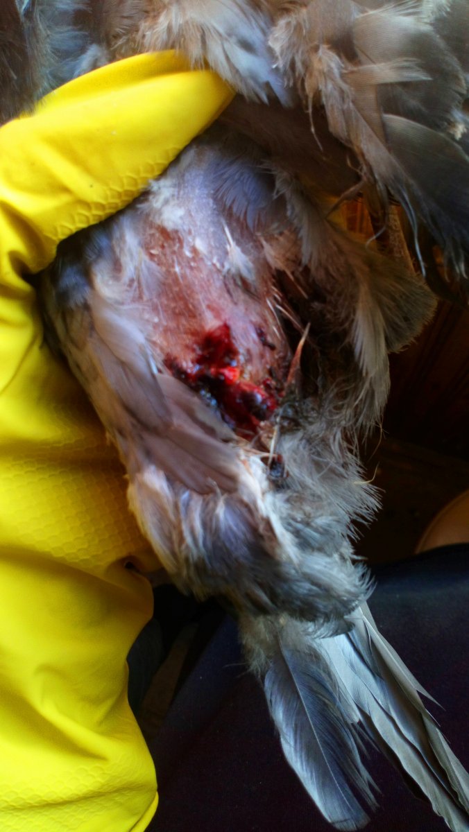 Tatii Опубликовано 20 июля, 2022 #1 Опубликовано 20 июля, 2022 (изменено) В квартиру залетел голубь, живём на пятом(последнем) этаже, поэтому скорее всего с крыши. Осмотрев, поняла, что у птицы сломано крыло и около него рана. Прятался в очень труднодоступном месте, боюсь, что пока доставала повредила крыло ещё сильнее. Единственное место, где смогла его поместить - крысиная клетка-переноска. Не есть, не пьёт и будто похрипывает. Думаю, что подрали животные, так как почти нет перьев в хвосте, к орнитологу попасть возможности нет ближайшее время. Чем помочь птице? Очень жалко. Обработала рану хлоргексидином Изменено 20 июля, 2022 пользователем Tatii