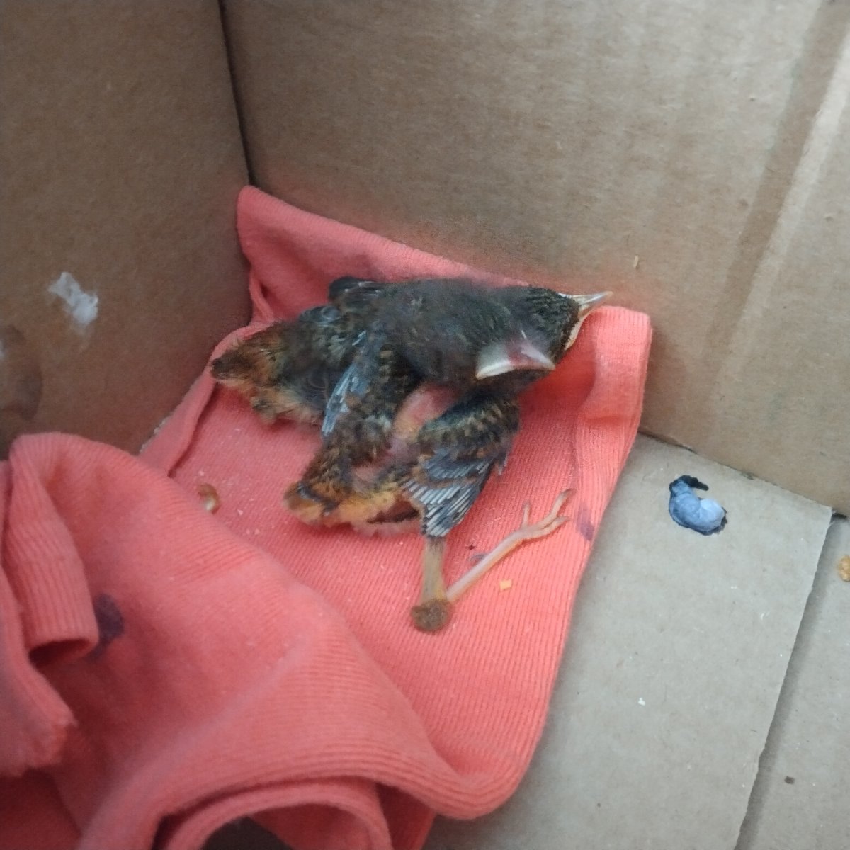 Ecleneqe Опубликовано 31 июля, 2022 #1 Опубликовано 31 июля, 2022 Отобрал у детей двоих птенцов малышей горихвосток. Удалось выкормить, один к сожалению умер по чистой случайности, полетел и ударился об шкаф, я даже не подозревал что такое может быть, я потому что больше по голубям и для них такое нонсенс. Второй живой, теперь страшно выпускать из клетки. Кормлю покупаю тараканов пока, не хочет есть никого кроме насекомых, живых или мертвых. Завел колонию мучных червей пока. Так вот, кажется с ним не так что-то. У него крылышки повисли вниз, будто не хватает кальция, как у голубей отказывают ножки. Я даже проверил на страх и риск, посадил на пол и он не стал летать. Может солнышка не хватает, я клетку вынес на солнышко. Он поактивнее стал, крылышками потом махать стал. А может это из-за того, что у него два дня был перебой в корме и я пока не закупил тараканов кормил сушеными насекомыми. А сушеные они же объемные, а внутри скукоженные. Может зоб у него от них заполняется, он думает что сытый, а на самом деле питания мало получает. Какие-нибудь советы есть что с крылышками и как лучше за ним ухаживать? Вот фотографии. В детстве и сейчас. Один погиб по трагической случайности.