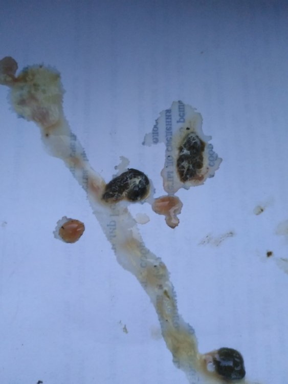 Semicvetik Опубликовано 19 ноября, 2022 Автор #103 Опубликовано 19 ноября, 2022 (изменено) Сегодня у малыша помет без крови, Даем Ципрофлоксацин Метронидазол и отвар крапивы и викасол. Его состояние нормальное. Взвесили его 233 гр. Его сегодняшний помет на фото. Ему очень не нравится лечится, клюется и гу гу гу " говорит" Голубка с больным крылом как три дня выпускаем полетать по комнате, уже залетает на кондиционер и там лежит,наблюдая за всей комнатой,потом слетает и ходит по полу и что интересно он сам залетает на Рябушкину переноску и заходит в свою, очень умный. Рябушка все больше опирается на больную лапу, Препараты все ей даем 2 раза в сутки. Изменено 19 ноября, 2022 пользователем Semicvetik 2