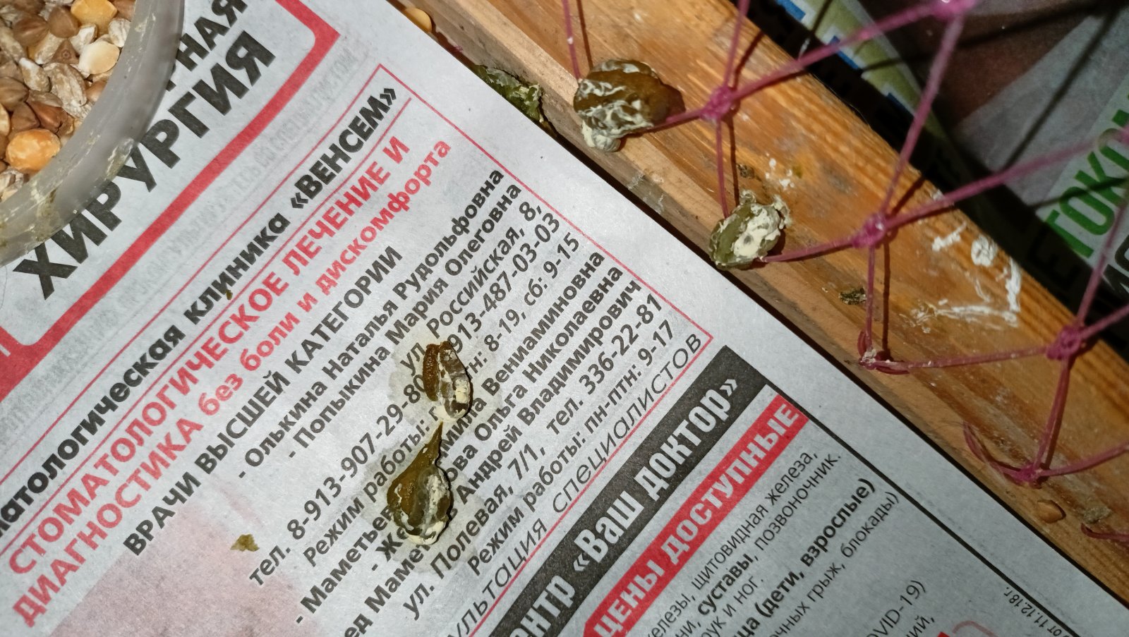 sunnyfunny Опубликовано 25 ноября, 2022 Автор #21 Опубликовано 25 ноября, 2022 Да, я хотела видео, но здесь не разрешает. Выложу на ю-тюб. Точный вес вечером вчера был 306 г. Утром на тощак 289-285. По упитанности я бы сказала скорее истощение. Либо между истощением и худобой. Фото помета вчера который был перед сном - прилагаю. Я специально размазала тряпочкой белой, чтоб было видно цвет. Помета меньше (но он и ест меньше сейчас), но белое есть. Я бы не сказала, что как-то кардинально изменился он. Вчера накормила шариками из каши - гораздо легче ими кормить!!! И быстрее!!! Птиц их глотает норм, не выплевывает особо. Если б не хотел - не ел наверное.... Выходит, лечение адекватное? Раз хоть немного полегче? Вот это после ночи, утром ещё не кормила. Воду пьет сам хорошо. Вот это после ночи, утром ещё не кормила. Воду пьет сам хорошо. 1