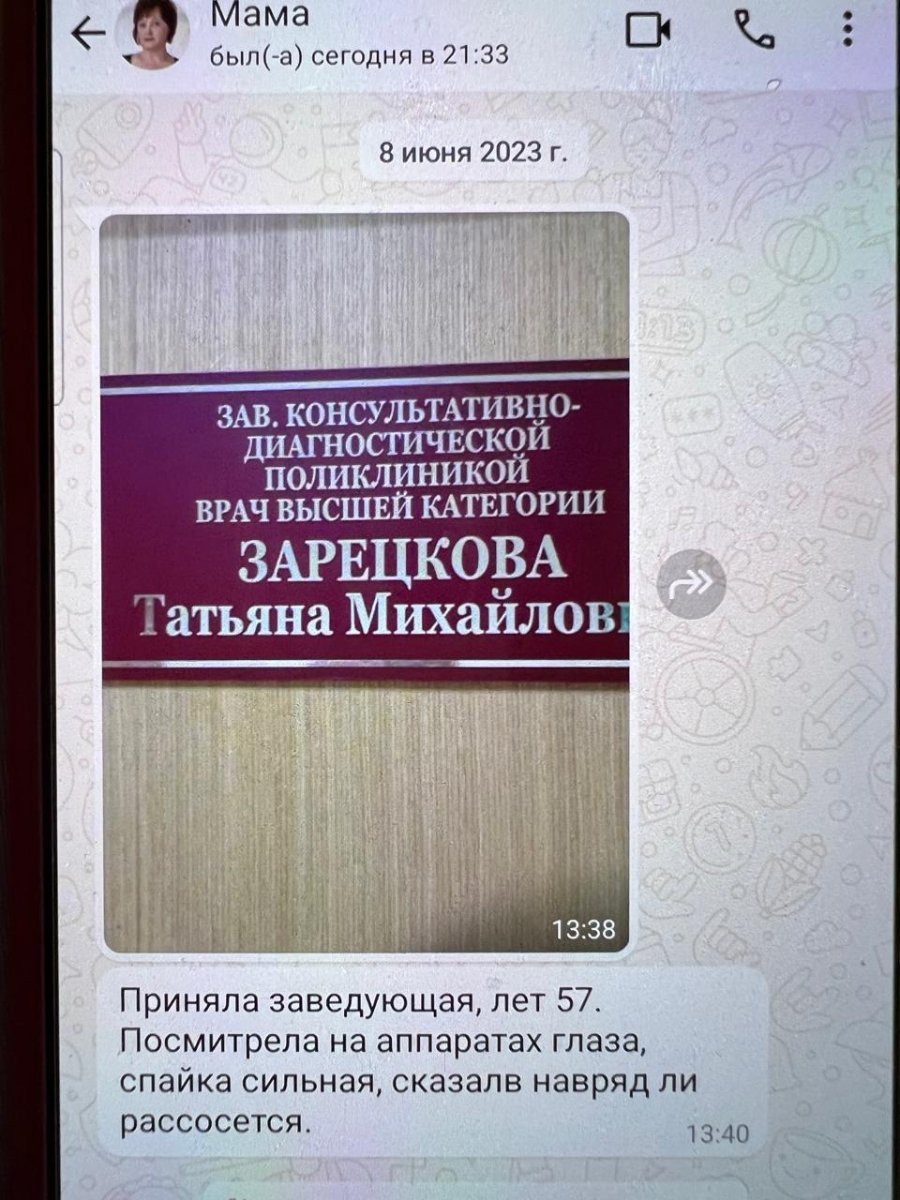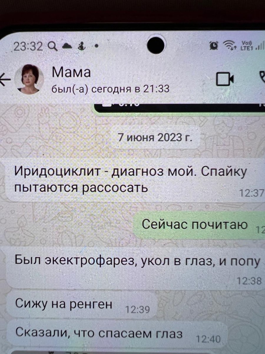 у мамы все плохо было с глазами-спасали ЗРЕНИЕ, я пишу зеленым-мама-белым  Ватсап мамы