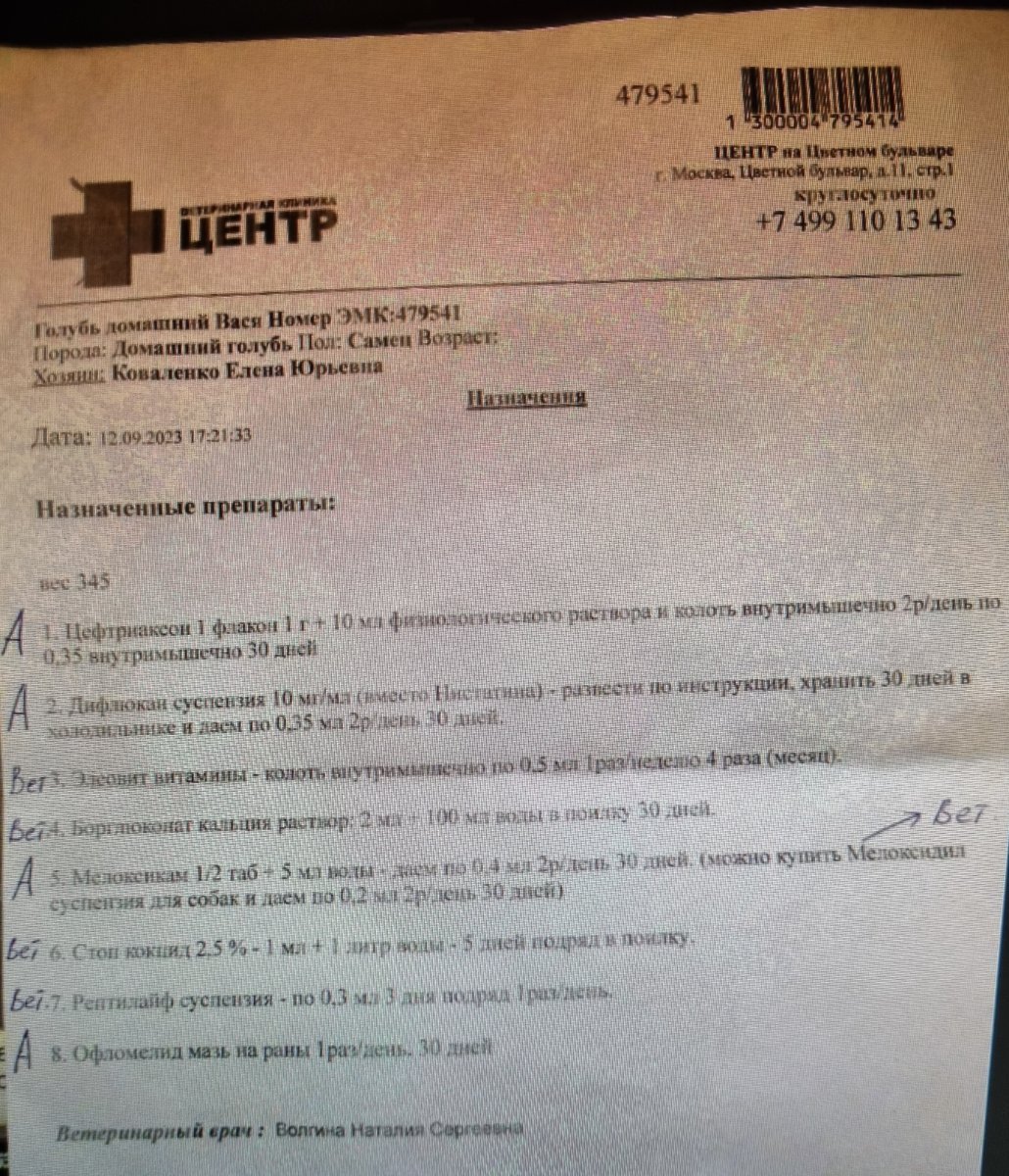 Она в назначениях что я видела кальций приписывает на 30 дней-и паральлельно доксициклин-а потом после нее голуби что то не выздоравливают от такого совмещения лекарств-я могу вам даже тему эту скинуть
