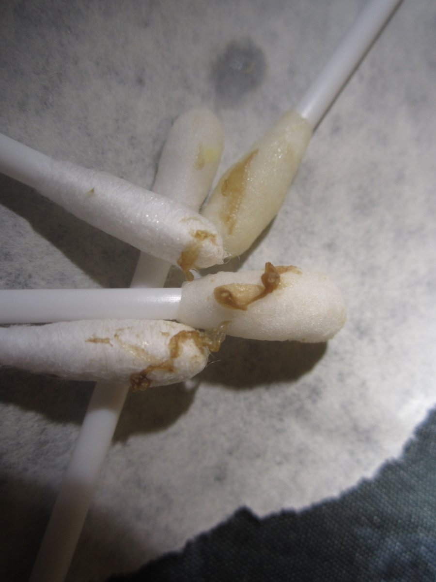 Deem Опубликовано 28 февраля, 2023 Автор #241 Опубликовано 28 февраля, 2023 @ElizavetaO, да, смазывание Октенисептом определённо даёт положительный результат. Тщательно обрабатываю голубке всю полость рта, горло и пищевод – на сколько позволяет длина ватной палочки. На сегодняшний день большая часть абсцессов у неё уже сошла. По крайней мере в обозримой части горла. Как и раньше, вместе с абсцессами присутствует плотно вросший в слизистую белый налёт, с которым Октенисепт тоже справляется – сегодня налёт потемнел и стал хорошо сниматься ватной палочкой, в виде плёночек от жёлто-белого до светло-коричневого цвета. К сожалению не сфотографировал. На данный момент в полости рта практически чисто, но в пищеводе таких абсцессов и налёта остаётся ещё много. Помёт у голубки в основном такой: Скрытый текст 4