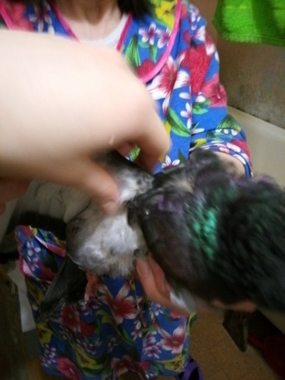 маленький принц Опубликовано 26 января, 2023 #106 Опубликовано 26 января, 2023 1 час назад, Destruct сказал: панкреатина дозу тогда надо ещё дать, если предыдущую он вырвал. я бы не давал дополнительно так как не хотел бы передозировки @Ирина 123 с катетером обращаться умеет? возможно что стоит промыть зоб читайте ОЧЕНЬ ВНИМАТЕЛЬНО и действуйте КРАЙНЕ ОСТОРОЖНО 16.04.2021 в 22:08, Arthur сказал: Привет всем! Делюсь своим опытом использования катетера при непроходимости зоба. 1. Создание катетера. Для катетера необходимо использовать шприц объёмом не менее 5 мл. Также необходимо найти женский уринальный катетер Нелатона, но может подойти и другой тонкий и эластичный катетер. Необходимо отрезать часть катетера, чтобы он был не менее 20 см (для взрослого голубя не менее 25 см). Также желательно, чтобы катетер не был сильно загнут и был более менее прямым, но при этом был эластичным. На одном из концах катетера нужно вырезать "ласточкин хвост":, ВАЖНО! Нельзя допустить образование острых концов на катетере, они могут поцарапать пищевод и зоб! Другой конец необходимо присоединить к шприцу. Если катетер не налезает на шприц, то необходимо сделать надрезы на этом конце, и присоединив к шприцу с помощью совсем небольшого количества скотча, хорошо заклеить пластилином для большей герметичности (следует размять пластилин, чтобы он стал мягким, после герметизации катетера пластилином можно дать ему немного снова затвердеть). Проверить работоспособность катетера можно просто попробовав набрать в него воды. Если вода не набирается, или набирается плохо, то значит надо лучше загерметизировать катетер. 2. Использование катетера. Для большей безопасности Вам необходим помощник, который будет просто держать голубя: 1) Если в зобу жидкого немного: (1) Впаиваем в голубя 4 мл воды и аккуратно массируем зоб (перемешиваем содержимое зоба). Можно заливать воду через катетер, тогда его не надо вытаскивать, массируем зоб вместе с катетером. Но мне показалось, что удобнее заливать воду в клюв с помощью инсулинового шприца, так как длительное нахождение катетера в зобе/пищеводе, очень сильно не нравится голубю: набираем 1 мл воды в шприц, аккуратно выпрямляем шею у голубя, вставляем шприц в клюв (до отметки 40-50 IU), вводим 1 мл воды в голубя, повторяем 3-5 раз (зависит от свободного места в зобу), массируем голубю зоб. ВАЖНО! держим голубя вертикально ВСЕГДА, следим, чтобы вода не выливалась из клюва при массировании зоба. (2) Помощник: должен взять голубя в "букетик" и держать его ВЕРТИКАЛЬНО, на зоб давить нельзя! Помощник не должен держать за зоб. Вам: Осторожно вытягиваем шею голубю, аккуратно вставляем катетер. Делаем это медленно, ВАЖНО, что бы катетер не зацепился за стенки пищевода и не поранил его! Если катетер упирается в стенку пищевода, то не толкаем дальше, а чуть-чуть вынимаем катетер и пробуем провести его под другим углом. Для большого удобства шприц можно взять в зубы, потому что двумя руками вставлять катетер удобнее. Вводим катетер до тех пор, пока он не окажется в зобе (можно очень аккуратно прощупывать катетер, пока он идёт по пищеводу). Когда катетер упрётся, необходимо чуть-чуть его вытащить (поднять на ~1 см), это нужно, чтобы катетер не прикасался к стенкам зоба и не порвал его. Медленно начинаем выкачивать содержимое, при этом нужно после каждого выкаченного миллилитра, немного п