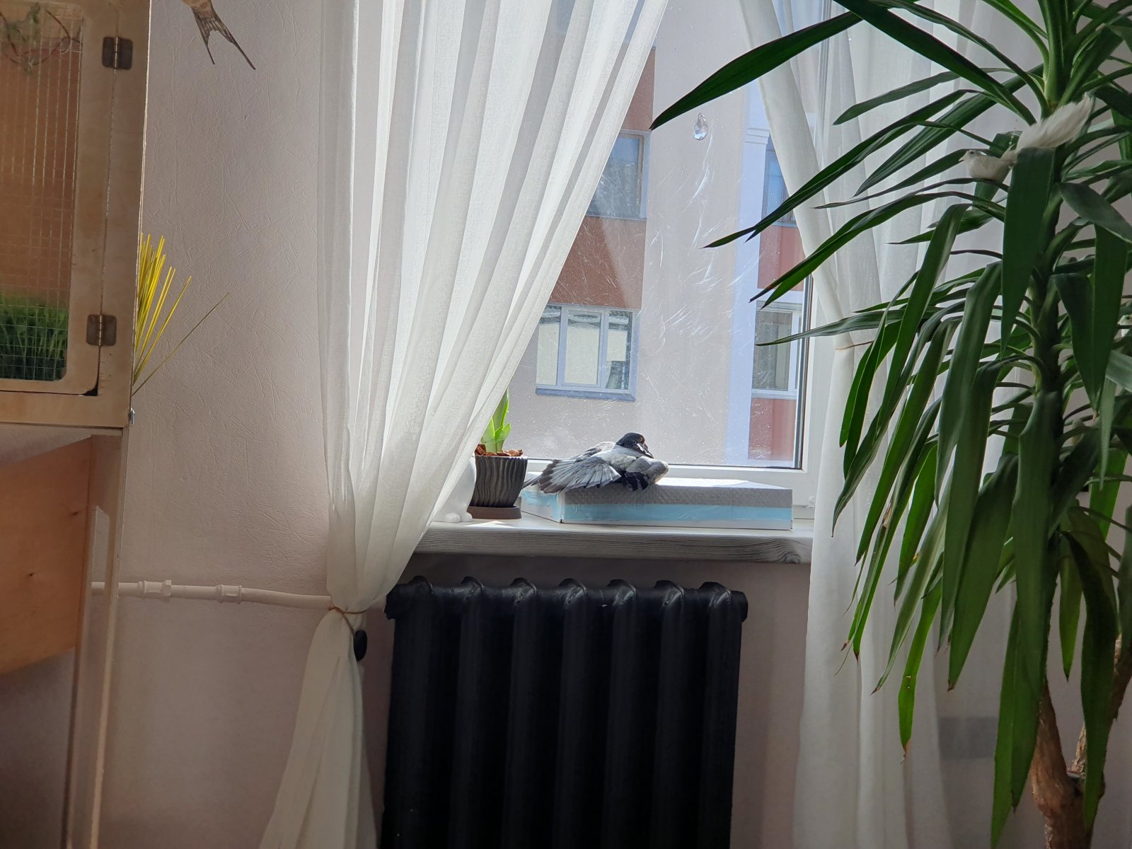 Татьяна Ладутько Опубликовано 22 февраля, 2023 Автор #43 Опубликовано 22 февраля, 2023 Если кому-то интересно, то Майя прекрасно себя чувствует, теперь, даже вечером не хочет залетать в домик (еда и вода у неё и на подоконнике, и на шкафу...). Когда сажу внутрь- топает, протестует ?? Недавно, у нас впервые, за долгое время, появилось солнышко, так Майи так понравилось. Залетает на коробочку, вся расплющивается и засыпает ? Домик ей доделали- положили крышу и закрыли 2 окошка возле коробочек, там все 4 съёмные, но 2 я решила оставить открытыми. Мне кажется, так уютнее ей! Снизу укрепили, для устойчивости. Начала купаться, правда в миске с водой на шкафу, почему-то её пол не устраивает, а меня шкаф! Мы сейчас боремся ? Когда стала кушать сама, полюбила семечки, чем я пользуюсь в приручении)) Так хочу ей что нибудь хорошее дать, может кто поделиться опытом, как можно её порадовать? Кстати, стал прилетать к ней голубок, воркует, но, похоже, Майи не интересно. Недавно видела такую душераздирающую картину... голуби за окном видят её еду, прям запрыгивают на сетку, ищут вход в дом, а Майя ходит туда сюда и так, по зернышку клюёт, бедняги, хотя я кормлю их достаточно! Вообщем, если кто-то поделиться секретами их любви- буду Очень рада ?? 3
