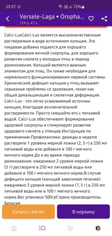 lanikoros Опубликовано 14 марта, 2023 #45 Опубликовано 14 марта, 2023 Верселе Лага делает высококачественные корма и добавки для голубей. Такой кальций не брали, а травяной чай нашим как-то не зашёл, заметно меньше пили из поилки.