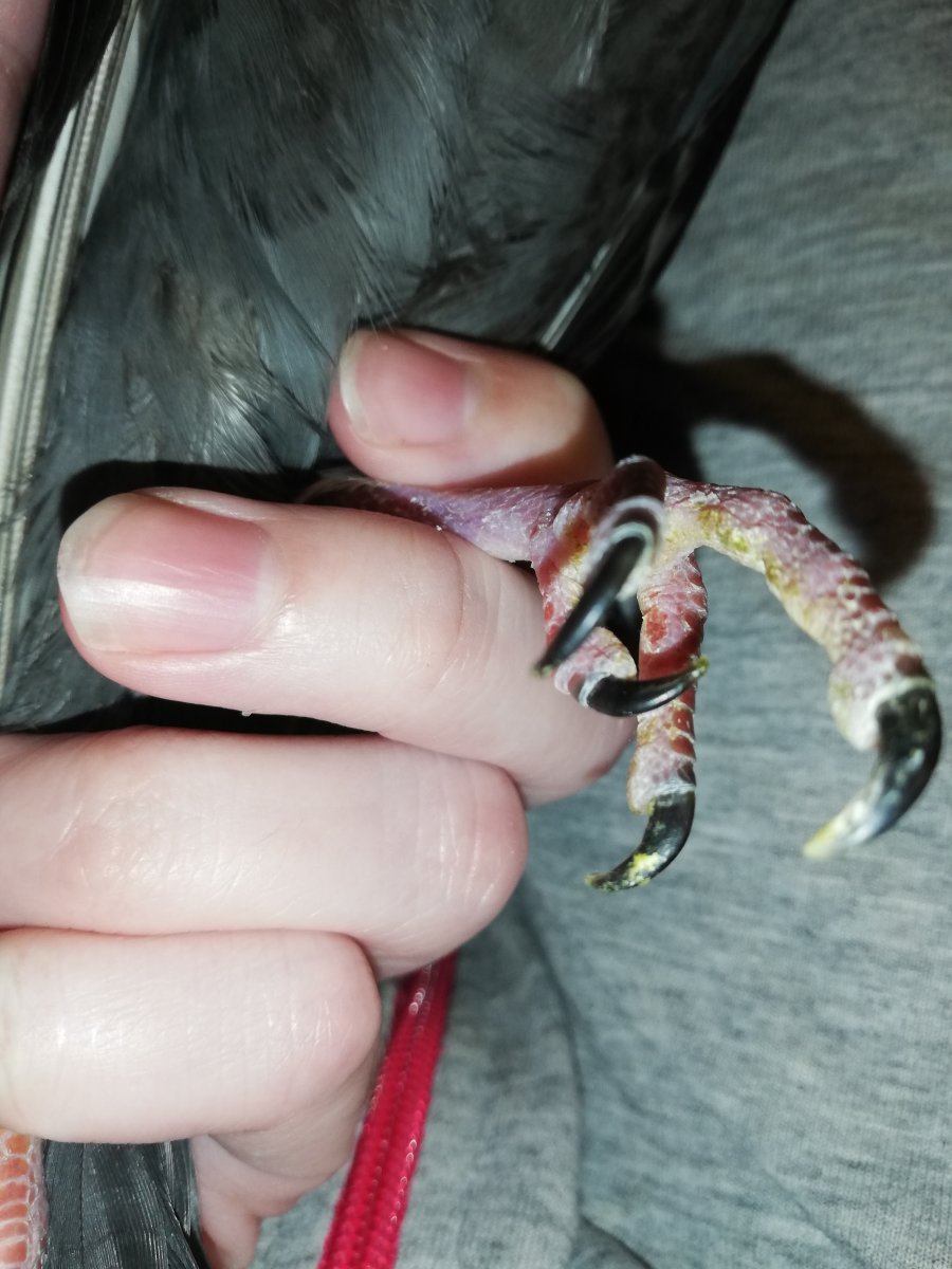 раны только на ногах? осмотрите пожалуйста и тело под перьями