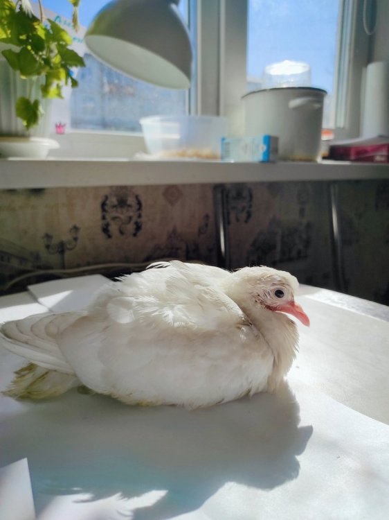 СветланаVesta Опубликовано 21 апреля, 2023 Автор #7 Опубликовано 21 апреля, 2023 (изменено) @Torkut Второй не мой. Привезла сегодня беленького. Киль острый, пищит, но пробует сам клевать. Кормили его кашкой неделю, или мало, или, видела, рисовой, не наедался, наверное. Запарила почти полную столовую ложку пшеницы, скормила, съел. Ещё пищал, подкинула сухого зерна - тоже съел. Сам. Пить не умеет. Показала воду, но напоить из шприца пришлось. Сел, надулся, помёта уже час нет, думаю, не придется ли маслом вазелиновым поить. С лапкой что-то, да. Похоже, на неправильно сросшийся перелом, прихрамывает. Плохой хватательный на пальчиках. Сделаю фото попозже. Поставила мин. добавки - ест, подкинула витаминок по кусочку таблетки - дрожжи и кальций д3 - съел. В туалет сходил.) Перья пытается чистить, грязненький. Изменено 21 апреля, 2023 пользователем СветланаVesta