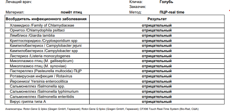 маленький принц Опубликовано 4 мая, 2023 #3 Опубликовано 4 мая, 2023 весь помёт выглядит именно так как колбаски в воде а не как коровий понос? 2 часа назад, Жнец сказал: 1) Может ли птица заразить млекопитающих (кошки, мангусты, грызуны) чем-то патогенным кроме сальмонеллеза и орнитоза? кошки болезнью своей еды не болеют расстояние между прутьями достаточно небольшие? ни мангусты ни грызуны в вольер не пролезут? 2 часа назад, Жнец сказал: даны анализы помета на практически все птичьи заболевания по методике ПЦР + полный бакпосев с подтитровкой, включая грибы. На яйца гельминтов и простейших анализ уже готов - все чисто. результаты анализов покажите пожалуйста или анализы ещё не готовы? 2 часа назад, Жнец сказал: 2) Собственно, насчет сальмонеллеза. Похожи ли признаки на скрытую либо же кишечную форму? абсолютно нет насколько я помню сальмонелёз выглядят как зелёный коровий понос тут больше похоже на кокцидии или болезнь почек (лёгкая инфекция ЖКТ тоже может быть но явно не сальмонелёз) 3 часа назад, Жнец сказал: Самец тульского - жидкий оформленный помет коричневыми колбасками, иногда жидкий помет в виде несформированной кучи с недопереваренными остатками корма, отдельной воды практически нет. как я понял помёт у всех разный покажите пожалуйста помёт каждого пояснив где чей? 3 часа назад, Жнец сказал: 4) Тряска крыльями и хвостом - нормальный ли это сигнал при стрессовой ситуации? Реагируют птицы так в основном тогда, когда человек приближается к клетке. волнуются Здоровья Вашим голубям! 1