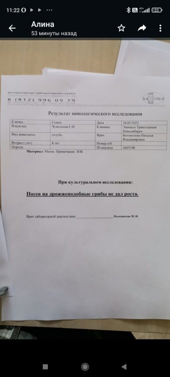Cabrera Опубликовано 25 мая, 2023 #36 Опубликовано 25 мая, 2023 Я бы выбрала ципрофлоксацин (Ципролет в человеческой аптеке), но из-за того, что Ваш голубь принимал Байтрил слишком коротким курсом, у клебсиеллы могла возникнуть к нему так называемая перекрестная устойчивость, так как и энрофлоксацин (Байтрил) и ципрофлоксацин (Ципролет) это антибиотики из одной группы и такое случается. Ципрофлоксацин хорошо переносится голубями и более безопасен с точки зрения побочных эффектов, чем энрофлоксацин. Давайте начнём ципрофлоксацин и если не будет никакой динамики в течение нескольких дней, то заменим его на другой антибиотик. Напишите, пожалуйста, когда купите Ципролет, таблетки бывают 250 мг и 500 мг, я Вам рассчитаю дозировку по весу птицы. В выписке указано, что голубь весит 230 грамм, это актуальный вес? По поводу флуконазола (если 230 грамм актуальный вес) - содержимое 1 капсулы растворяете в 3 мл воды и выпаиваете такого раствора по 0,16 мл 2 раза в день. Давать это лекарство необходимо все время, пока птица получает антибиотик. Если голубь весит не 230 г, то надо будет пересчитать дозировку. @Елена_Nsk