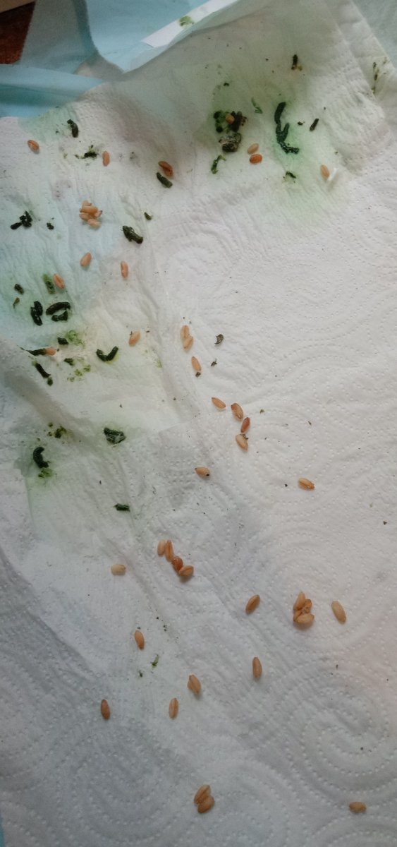 Анна1972 Опубликовано 20 июля, 2023 Автор #24 Опубликовано 20 июля, 2023 @маленький принц @Cabrera Добрый день . Сегодня Пеструшка вырвал после утреннего кормления примерно половину зерна. Несколько дней назад то же вырвало . То есть это уже второй случай рвоты. Птица умеет есть сама , но склевав несколько зерен теряет интерес к еде . То есть аппетитом не блещет , хотя плечиками потряхивает и попискивает , тычиться в пальцы. Кормлю руками . В день три полные ч.л .( до запаривания ) птица съедает . Зерно уходит полностью в среднем за 8 часов ( +/- час , зависит от объема съеденного ). Пьёт меньше чем в первые дни . Вес утром натощак 215 грамм. Помет уже давно сытый и сформированный , но вода часто присутствует в помете . Купила на всякий случай Тилозин 50 , что то на уровне интуиции я не довольна лечением. Даю Юнидокс по 0,3 мл два раза, Нистатин по 1/4 два раза , Силимар по 1/4 два раза в день. Панкреатин закончили курс. Фото свежего помета через два с половиной часа после еды и питья . 1