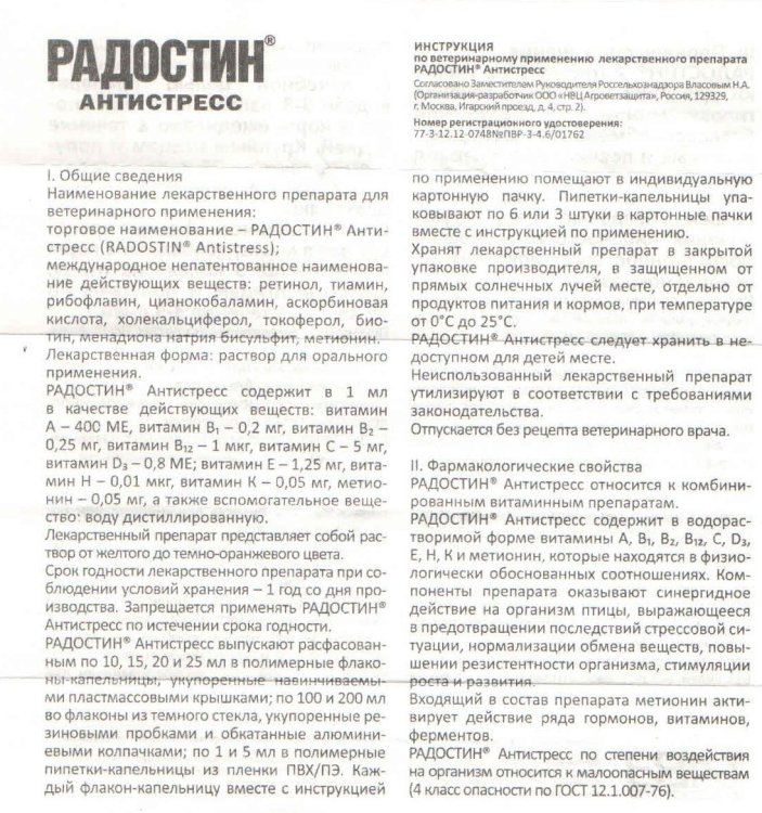 K.IM Опубликовано 31 июля, 2023 Автор #3 Опубликовано 31 июля, 2023 (изменено) Витам 5 мл/2 р. в день - примерно 2,5 недели Глюконат кальция - из расчета "3 мл. на в 100 мл. воды" - 11 дней Сейчас даем "Радостин антистресс" для птиц - 8 капель в день. Прикрепила инструкцию. В магазине сказали, что главное не превысить дневную норму. Мы разводили в 5 мл воды 8 капель. 41 минуту назад, маленький принц сказал: На пояснице под перьями синяка нет? Хвосто шевелить может? Синяка нет. На счет хвоста сложно сказать, потому что он как правило, сидит на нем. Но вроде хвостовые перья он "распушал". И когда он пятится назад, хвост так загибается, что боюсь, что он его сломает скоро. А как его разместить, чтобы он сам себя не травмировал не знаю. Может коробку поменьше сделать... 41 минуту назад, маленький принц сказал: ВНОВЬ ХОДИТЬ И БЕГАТЬ и Здоровья Вашему голубёнку! Спасибо, Маленький принц... Надеюсь, получится поставить его на ноги На небольшом видео он подергивает крылом, но думаю, что это он меня боится Изменено 31 июля, 2023 пользователем K.IM
