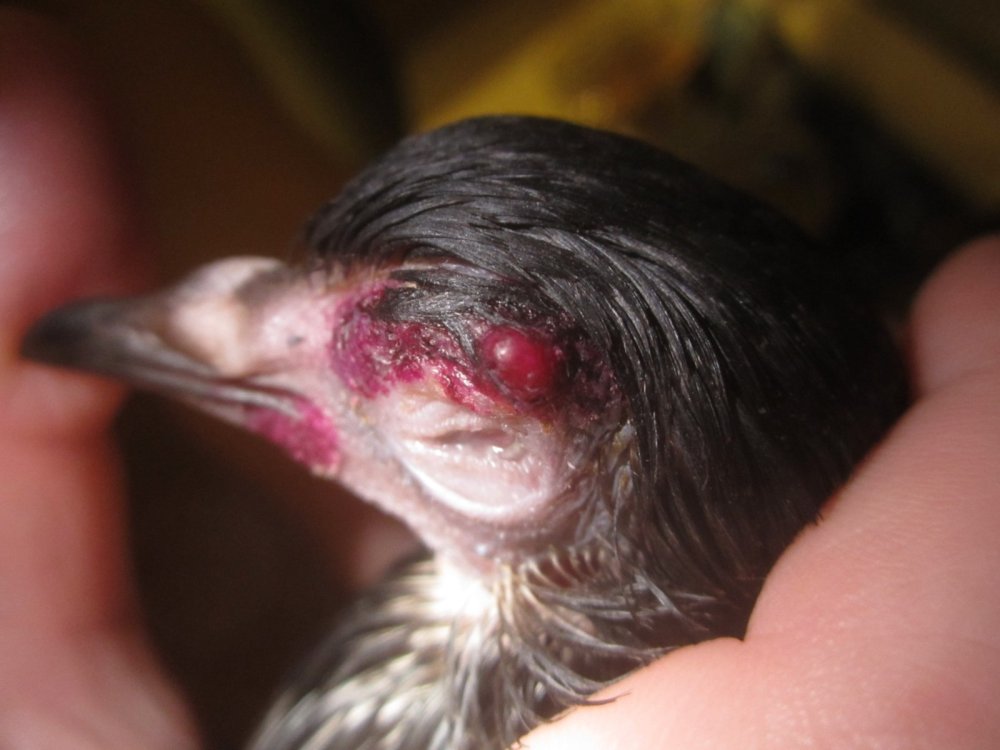 Deem Опубликовано 30 августа, 2023 #1 Опубликовано 30 августа, 2023 (изменено) Здравствуйте! Несколько дней назад я подобрал слётка с почти полностью покрытой гнойной коркой левой стороной головы и покоцаным хвостом. Размочив гной обнаружил, что левого глаза нет, а веки припухли; так же заметил слева на голове и возле клюва пару маленьких царапинок и отсутствие перьев. В остальном – не считая сильной худобы – голубок выглядел здоровым. Текущее лечение: промываю глазницу каплями Альбуцид, затем закладываю Тетрациклиновую глазную мазь. Царапинки пару раз мазал Левометилом. На данный момент припухлость век сошла и глазница уже почти не гноится; но меня очень беспокоит, что кожа вокруг глазницы стала темнее и как-то "отёчнее" что-ли, и на ней начали появляться шишки. Фото левой стороны: Спойлер Что ещё можно предпринять? Помогите, пожалуйста. Изменено 30 августа, 2023 пользователем Deem 1