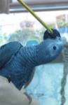 А еще сегодня первый раз чуть-чуть обдала Крис водой из душа! :yes: Мы с первого дня вместе убираем клетку. Решетку мОю, сидя на краешке ванной, Кристи в это время у меня на колене наблюдает.Несколько дней назад я заметила, что она периодически распушает перышки, тогда я стала рукой побрызгивать на нее водичку, и вот сегодня Криська сама чуть не залезла под душ. Я ее немного намочила, но купать не стала - пусть все будет постепенно. Все-таки напор воды и крупные капли могут напугать..., хотя и регулирую душ на самый мягкий режим. Это не опрыскивание.