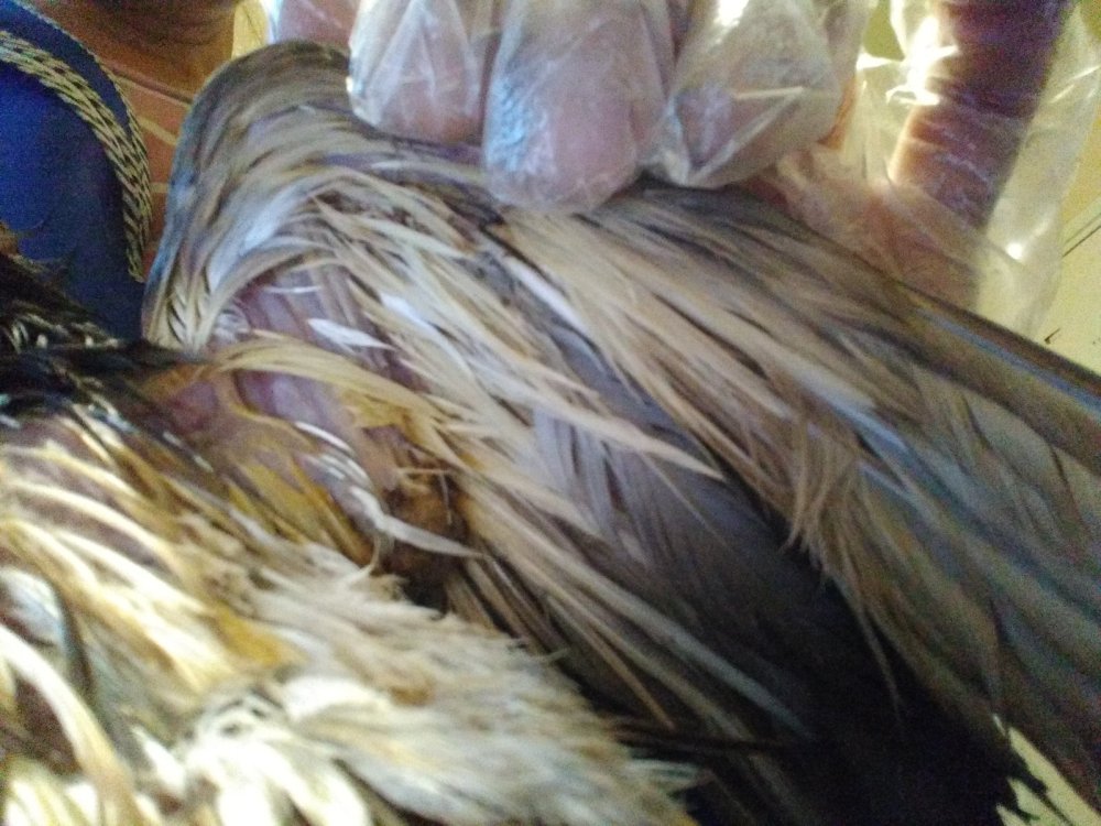 Patata Опубликовано 13 октября, 2023 #1 Опубликовано 13 октября, 2023 (изменено) Здравствуйте. 2,5 недели назад нашла голубя, сидел у входа в магазин. Череп лысый до кости (будто кто то аккуратно снял скальп), не улетал. Принесла домой , ел охотно, но не предпринимал попытку летать (я то думала проблема только с головой), потом почувствовала запах, Под вторым крылом рана и кровь. Это я заметила спустя сутки. Обработала все перекисью, потом водой с марганцовкой, на сл день купила мазь Левосин, Бетадин раствор и метронидазол в таблетках. Две недели промывала и клала мазь на рану. Также Левосином протирала по кругу, где перья череп. дня три давал таблетки. Все вроде ничего, но как мне показалось стала сзади лысеть шея. Потом я предположила, что это эффект от мази и решила промыть шею перекисью и промокнула ватным диском смоченным Бетадином. И... голубь , который до этого попискивал , теперь не пищит, а будто хрюкает. Фото сделала сегодня утром. Мне кажется я Василису "угробила" последней процедурой. Птица очень агрессивно на меня реагирует, бьет крылом, хрюкает и водит зобом из стороны в сторону (это когда подхожу к лотку поменять бумагу). Помогите пожалуйста , что делать. Изменено 13 октября, 2023 пользователем Patata придала "смысл" некоторым фразам 1