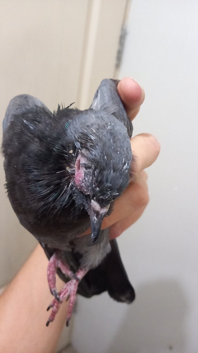 2. Основная проблема со второй птицей, у него беда с глазом: когда его притащили, на глазу была огромная засохшая гнойная корка. Отмочив ее показался глаз, но в очень печальном состоянии, а рядом с глазом шишка, полагаю в ней гной. После двух дней наблюдения шишка, кажется, стала больше, глаз как будто затягивается, что делать - не знаю...