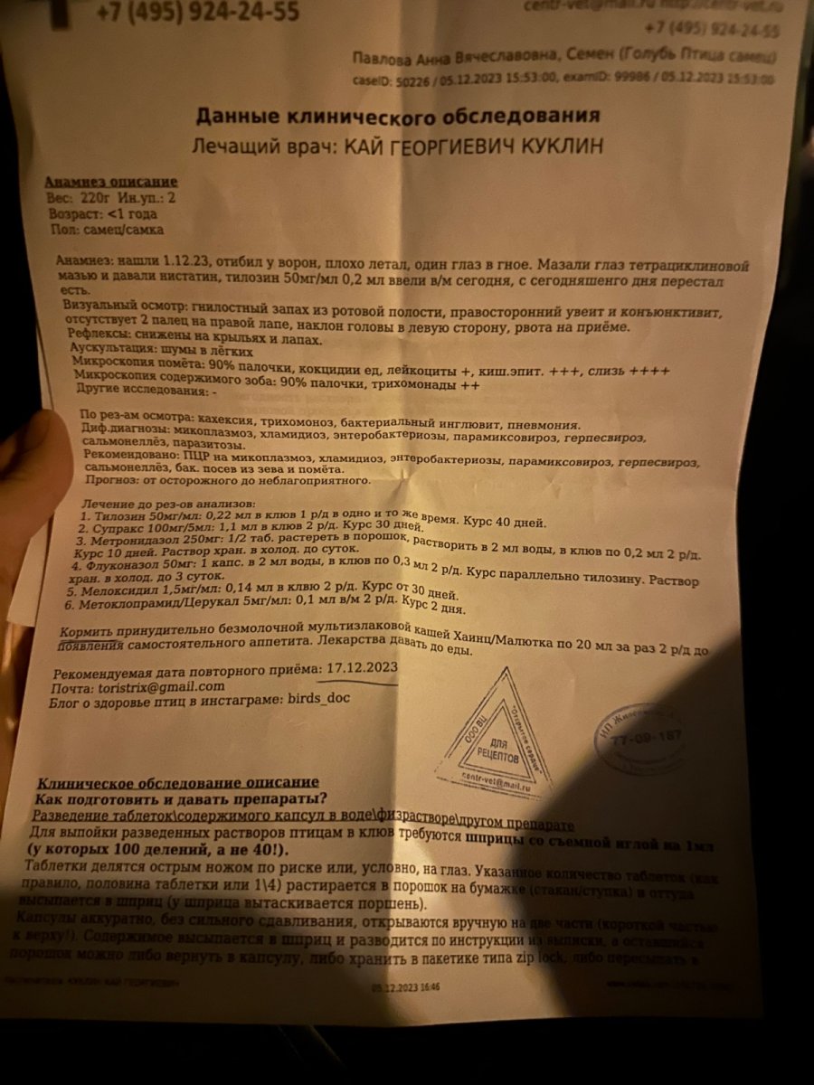 Annapavlova Опубликовано 5 декабря, 2023 Автор #25 Опубликовано 5 декабря, 2023 @Cabrera экстренно побежали к орнитологу, единственный, кто был сегодня доступен - Кай как бы мы не хотели, но выхода не было Птице очень плохо, боюсь не выкарабкается ( вот назначения, посмотри, пожалуйста 🙏🏻 1