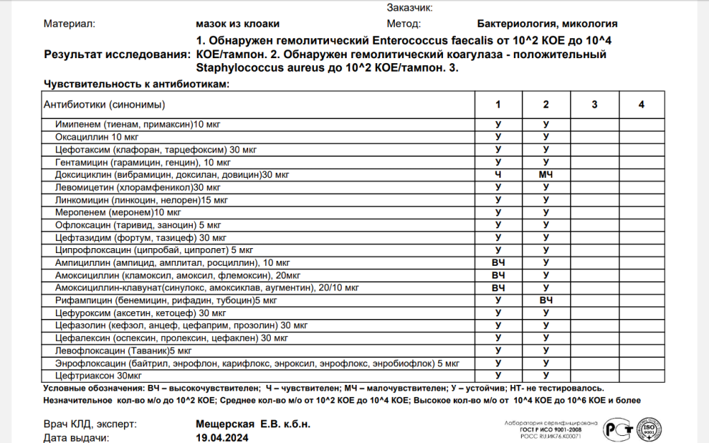 15 апреля подключила Секстафаг. Он широкого действия. Его назначала Кабрера оптимисту. Он и от энтерококков и от стафилококков. Но видимо этого недостаточно.