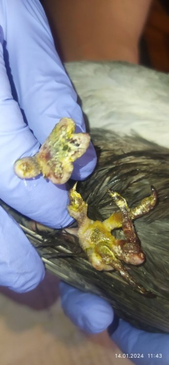 У Надежды утром 3 пальца на одной лапе сами отвалились. Консультировались с Зосей. Она написала пока обрабатывать смесью 2