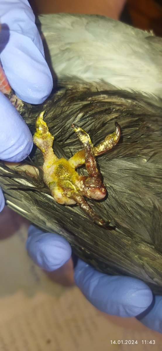 Чтото желтое текло рядом с пометом. Не знакм откуда