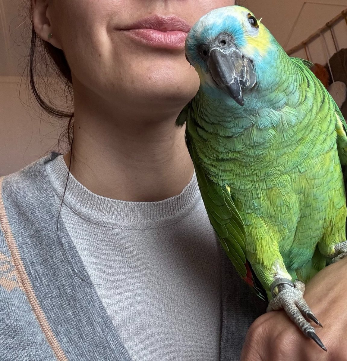 Rosi Опубликовано 28 января, 2024 #1 Опубликовано 28 января, 2024 (изменено) Всем привет. Мы здесь новенькие, на днях у меня случилась незапланированная покупка Амазона. Раньше были два волнистика, жили в большущей клетке, летали свободно по комнате. В связи с переездом из России на Мадейру, пристроила их подруге, ручными они особо не были и смену кормилицы не заметили))) Из животных у нас тут только взрослый бивер-йорк Филя. В середине ноября в связи с переходом на сухой корм впервые заехала за едой собаке в местный «садовый» гипермаркет в котором есть большой птичий уголок. Среди бесконечных клеток обратила внимание на двух зеленых попугаев. Сидели они в разных концах магазина, один был мега-общительный красавец, который через клетку лез гладиться и играть и второй забитый, трясущийся, очень вялый и мелковатый на вид. Причем цена на двоих была одинаковая. Уточнила у консультанта, он сказал, что активного привезли две недели назад, а запуганный и унылый сидит уже несколько месяцев, поэтому он на стрессе от окружающих птиц, людей, погрузочных машин и не такой активный. Сохранилась фото из магазина: В начале января мы снова заехали в магазин уже с мужем, как выяснилось, игривого красавца купили очень быстро, а уныленький так и сидел там. Я кинула удочку, может попугая? Получила категорический отказ, мы часто ездим в отпуск, летом это могут быть 2-3 недели, некуда пристраивать большую птицу. Я согласилась. И вот два дня назад я приехала за сачком для авокадо, зашла в птичий отдел в надежде, что попугая кто-то купил. Но он так и сидел посреди хаоса, шума, все такой же пришибленный. Разговорилась с девушкой-продавцом. Прикинула, сколько он провел в этой клетке без солнечного света в одиночестве в магазине, поняла, что никому он не нужен такой. За эти же деньги по соседству стояли шикарные красивые ухоженные общительные попугаи. И я купила малыша, посчитав, что с проблемами будем разбираться уже потом. У наших друзей ему будет явно лучше во время наших отпусков, чем в магазине. Назвали Степа, получились почти Филя и Степашка, кто помнит передачу из нашего детства) После общения с заводиком выяснилось, что попугая привезли в магазин в ИЮНЕ, а рожден он был в 2022 году. То есть малыш провел в пустой клетке 8 месяцев. Для содержания купили ему самую большую клетку, которая была на острове, сидел он точно в такой же в магазине, поэтому среда ему оказалась знакома. Рук он не сильно боится, не шарахается, а просто отходит в сторону, если ковыряюсь в клетке, что-то вешаю. За эти дни мною перечитаны форумы, пересмотрен Козлитин. Клетка будет наполняться, на острове очень мало аксессуаров для попугаев. Из полезного, в нашем саду нарвала ему ветки лимонного дерева, гуавы с маленькими еще зелеными плодами, настоящего бамбука, лаванды, второй день он обгладывает их с огромным удовольствием, распробовал банан, яблоко. Думала начинать выпускать Степу попозже, но он такие скандалы начал закатывать, показывал, что уже готов лететь😄 поэтому вчера, на третий день, открыли клетку. Он долго не решался полететь, я уже подумала, что атрофировались мышцы, но нет, наш мальчик летает прекрасно😊 но с трудом пока садится на поверхности, в планах сделать стойки по комнате и уголок из веток. А это уже дома: свой зерновой корм он игнорирует, ест его очень мало, я купила Престиж для амазонов, там смес