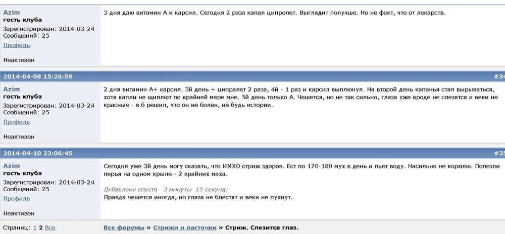 на странице 2  тема «Болезни диких певчих птиц и лечение и профилактика»